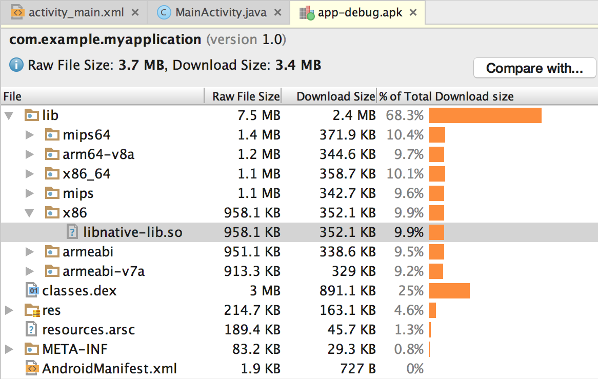 .Figure 2. Locate a native library using the APK Analyzer.