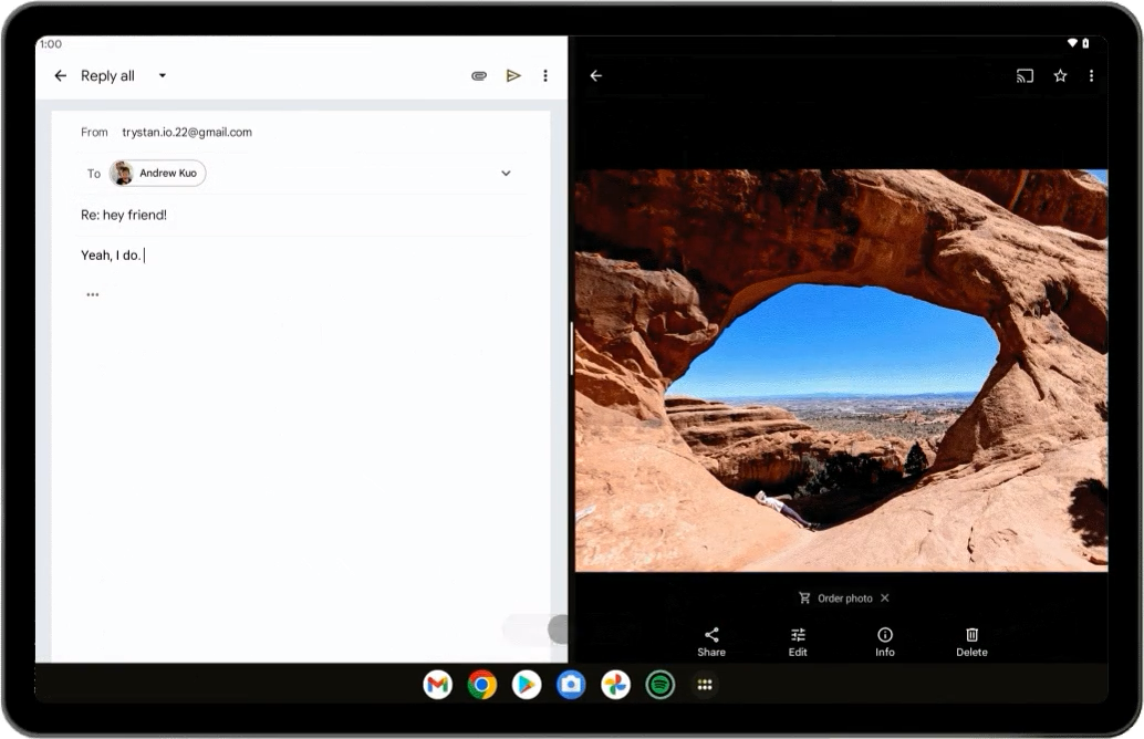Users often multitask when using the larger screens of tablets, Chromebooks, and foldables. New productivity features make multitasking even more powerful and intuitive.