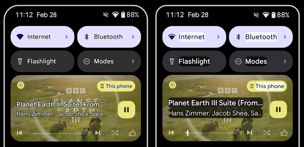 У пользователей со слабым зрением часто снижена контрастная чувствительность, что затрудняет различение объектов на фоне. Чтобы помочь этим пользователям, в Android 16 вводится контурный текст, заменяющий высококонтрастный текст, который рисует вокруг текста более крупную контрастную область, что значительно улучшает читаемость.