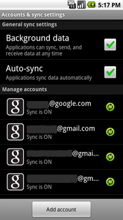 - ईमेल और संपर्क सिंक करने के लिए, किसी डिवाइस में एक से ज़्यादा खाते जोड़े जा सकते हैं. इनमें Exchange खाते भी शामिल हैं. (हैंडसेट बनाने वाली कंपनियां यह चुन सकती हैं कि उन्हें अपने डिवाइसों में Exchange की सुविधा देनी है या नहीं.)