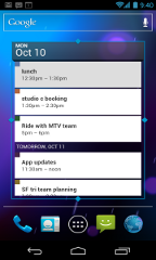 Android 4.0'taki ana ekranlar, içerik açısından zengin ve özelleştirilebilir olacak şekilde tasarlanmıştır. Kullanıcılar kısayollar eklemenin yanı sıra canlı uygulama içeriklerini doğrudan etkileşimli widget'lar aracılığıyla da yerleştirebilir. Widget'lar, kullanıcıların uygulama başlatmak zorunda kalmadan doğrudan ana ekrandan e-postalarını kontrol etmesine, takvimlerini incelemesine, müzik dinlemesine, sosyal medya akışlarını kontrol etmesine ve daha birçok işlem yapmasına olanak tanır. Widget'lar yeniden boyutlandırılabilir. Bu sayede kullanıcılar daha fazla içerik göstermek için widget'ları genişletebilir veya yer kazanmak için küçültebilir.