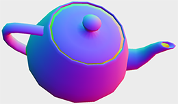Pilih tombol ini untuk melihat normal. Merah menunjukkan nilai sumbu x positif, warna hijau untuk nilai sumbu y positif, dan warna biru untuk nilai sumbu z positif. | ![]() |