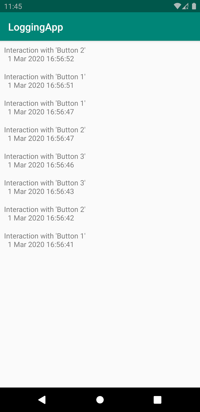 ご覧のように、番号が付けられたボタンを操作するたびにログが作成されて保存されます。[See All Logs] 画面に、以前のすべての操作のリストが表示されます。ログを削除するには、[Delete Logs] ボタンをタップします。