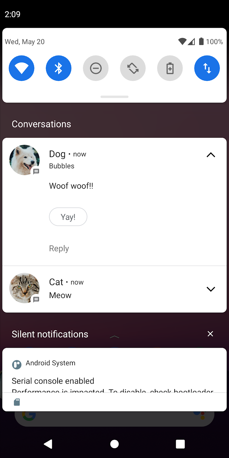 Now that you know how the app works, let's start by showing our notifications in the Conversations section of the notification shade.