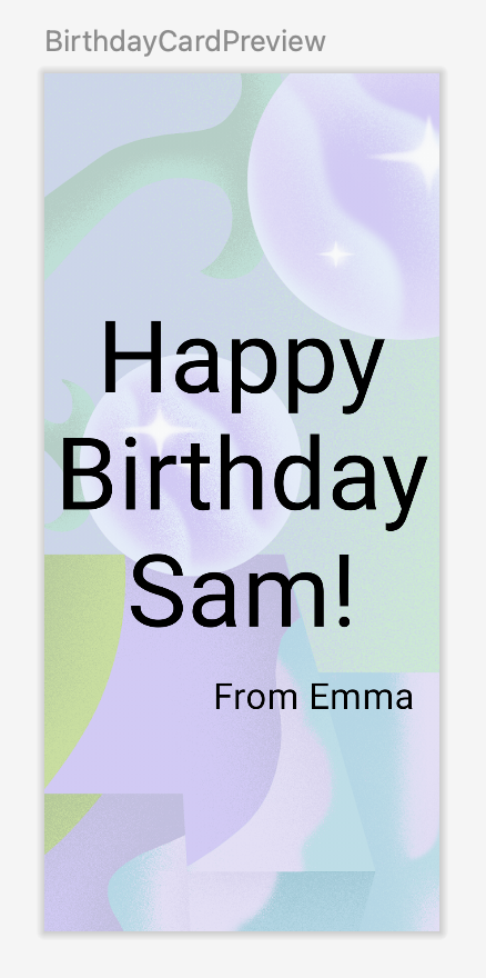 stringResource()및 추출된 문자열을 사용하도록BirthdayCardPreview()를 업데이트합니다.