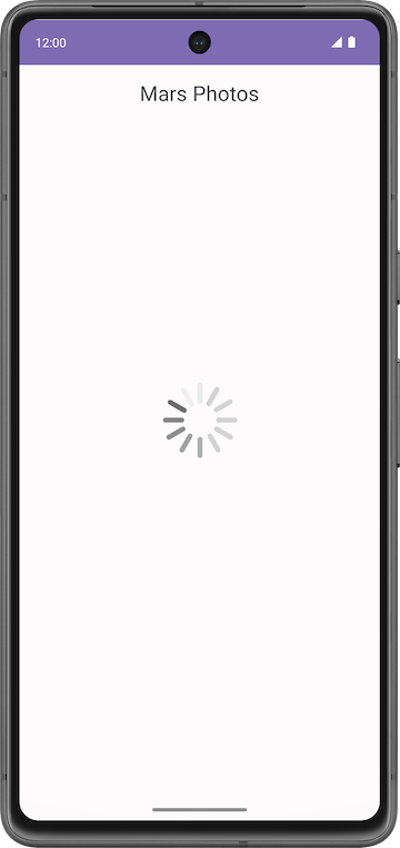 MarsPhotosApphiển thị nội dung trên màn hình, chẳng hạn như thanh ứng dụng trên cùng và thành phần kết hợpHomeScreen. Văn bản phần giữ chỗ ở bước trước đó sẽ hiện trong thành phần kết hợp này. - Trong lớp học lập trình tiếp theo, thành phần kết hợp này sẽ hiển thị dữ liệu nhận được từ máy chủ phụ trợ của Mars Photos.