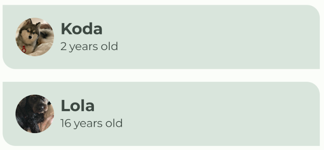 displayMediumcomo estilo paradogName, ya que es información importante y breve. AgregabodyLargecomo estilo paradogAge, ya que funciona bien con tamaños de texto más pequeños.
