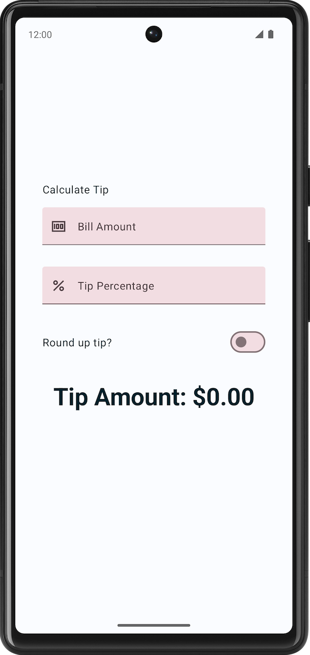 总而言之,您将 amountInput 状态从 EditNumberField() 提升到了 TipTimeLayout() 可组合项中。为了让文本框能够像以前一样工作,您必须向 EditNumberField() 可组合函数传入两个实参:amountInput 值,以及根据用户输入更新 amountInput 值的 lambda 回调。借助这些更改,您即可根据 TipTimeLayout() 中的 amountInput 属性计算并向用户显示小费金额。