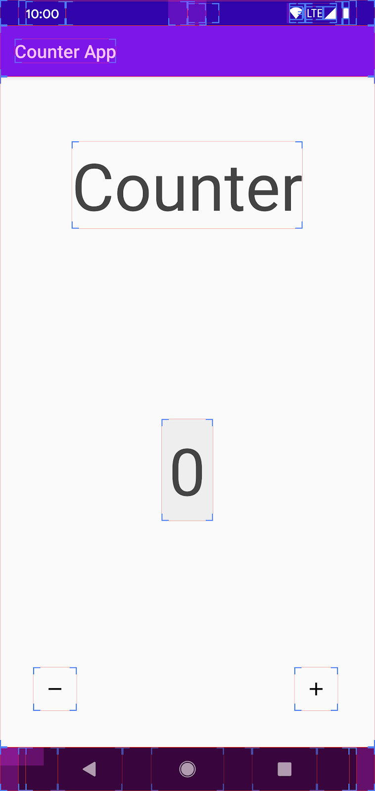 Now observe the layout bounds of Counter screen, focusing on the two buttons**:**