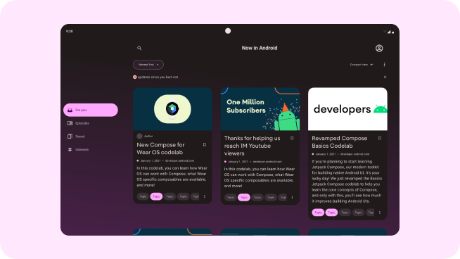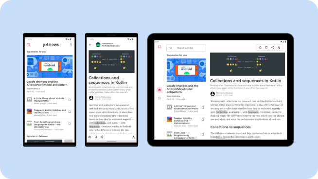使用 Jetpack Compose 建構的新聞閱讀應用程式範例。這個範例說明 Compose 目前的 UI 功能。