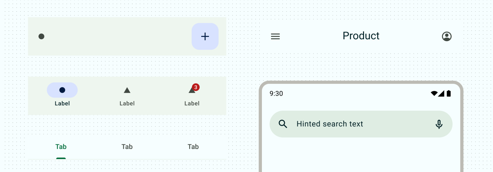 Navigation コンポーネントは、ユーザーが UI 間を移動する際に便利です。モバイルの場合、ナビゲーション バーまたはナビゲーション ドロワーにメインのナビゲーション デスティネーションが含まれます。タブ、ボトム アプリバー、トップ アプリバーでは、サポートする情報やアクションをさまざまな方法でナビゲートできます。レイアウト内でナビゲーションを使用する方法について詳しくは、こちらをご覧ください。
