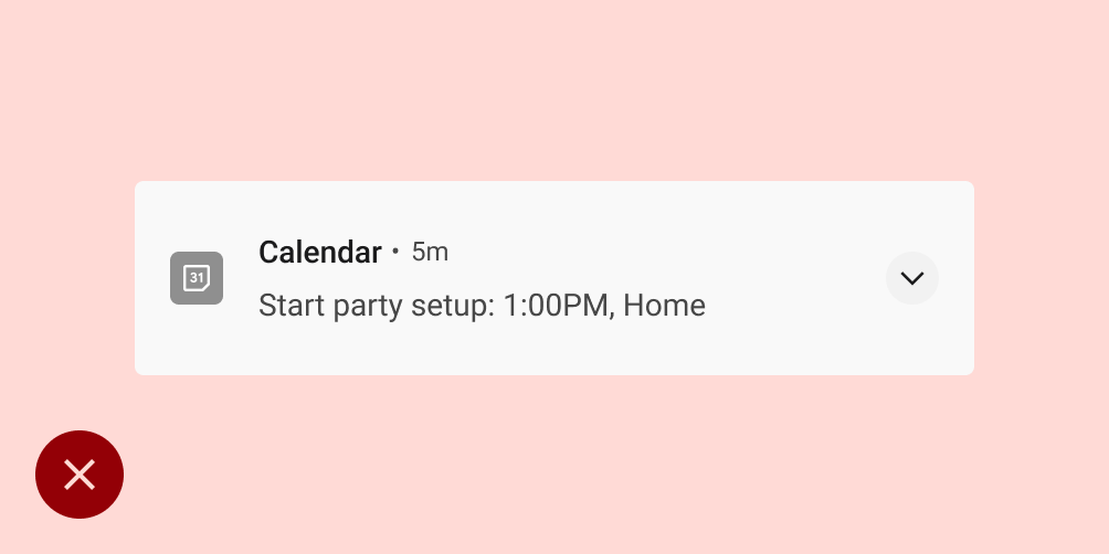A partire da Android 12 (livello API 31), il sistema ricava il colore dell'icona dal colore della notifica impostato nell'app. Se l'app non imposta il colore, viene utilizzato il colore del tema di sistema. In precedenza, il colore era grigio.
