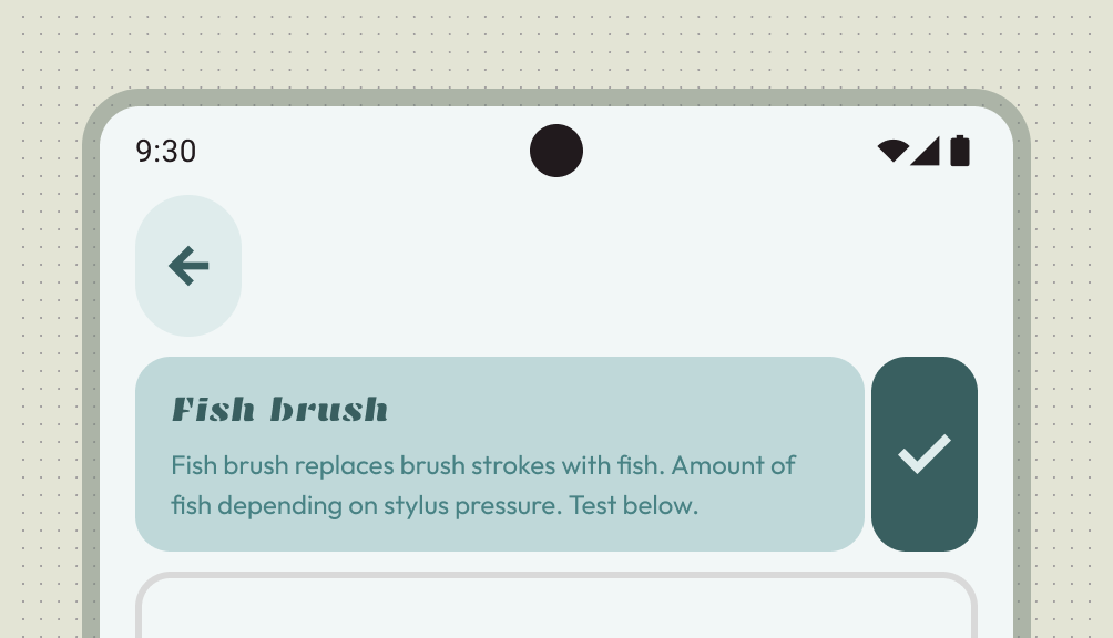 Crea una sección de configuración con el diseño de lista o de lista y detalles. La configuración puede usar listas de Material, lo que permite etiquetas, texto compatible, íconos y controles de selección.