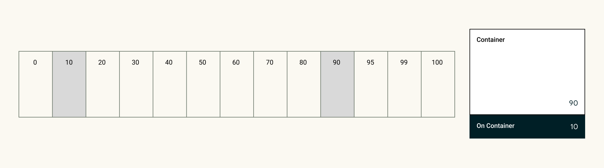 Les jeux de couleurs sont conçus pour être harmonieux, assurer un texte accessible et distinguer les éléments et les surfaces de l'UI les uns des autres. Les paires de rôles de couleur (composées de rôles de conteneur et de rôles sur le conteneur) ont des valeurs tonales qui offrent un contraste accessible.