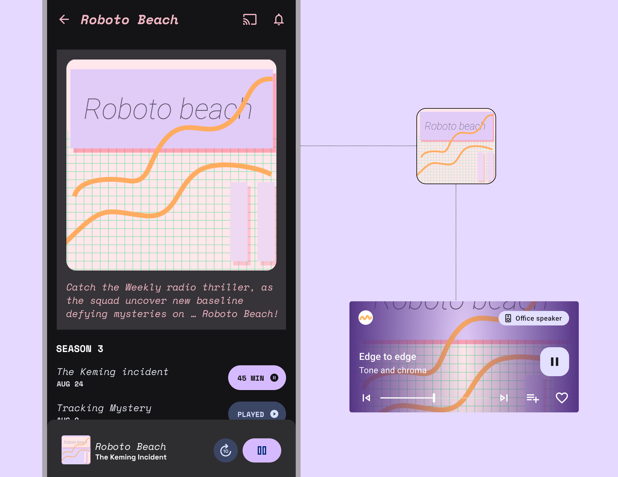 Per mettere in evidenza alcuni contenuti, l'interfaccia utente può utilizzare il colore dinamico per ereditare il colore da questi contenuti. Il colore dei contenuti funziona bene con un'origine di contenuti principale, ma assicurati di utilizzarlo con cautela nelle visualizzazioni con più origini di contenuti.