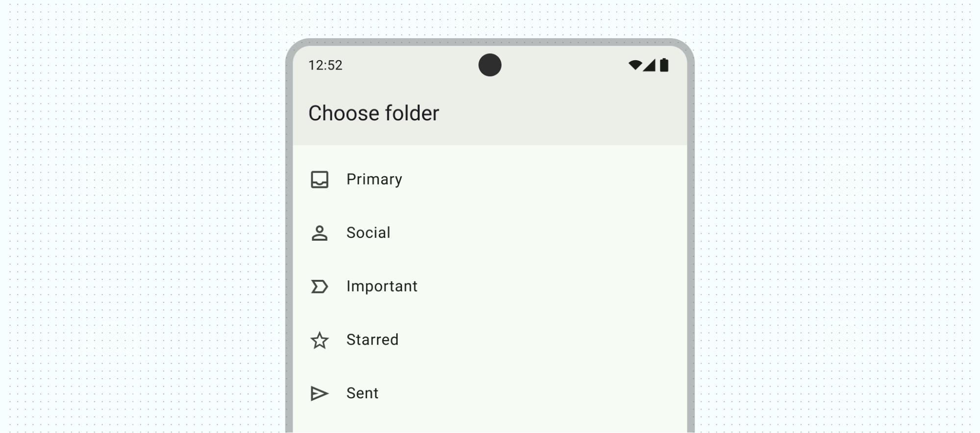Te sugerimos que proporciones un paso de configuración para brindar una experiencia personalizable y de un vistazo para las apps con varias categorías de contenido, como una app de correo electrónico.
