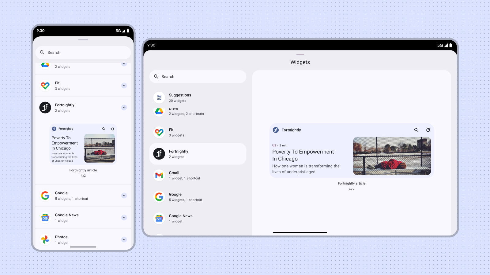 Użytkownicy mogą znaleźć i dodać widżet za pomocą selektora widżetów, tak jak w menu Widżety, które pojawia się po przytrzymaniu przycisku ekranu głównego lub ikony aplikacji. Na niektórych urządzeniach selektor widżetów wyświetla sekcję sugestii, w której wyświetlane są widżety wysokiej jakości. Możesz też promować widżet w aplikacji w odpowiednich momentach, gdy jego funkcje są najbardziej przydatne. Z tego przewodnika dowiesz się, jak skutecznie promować swoje widżety.