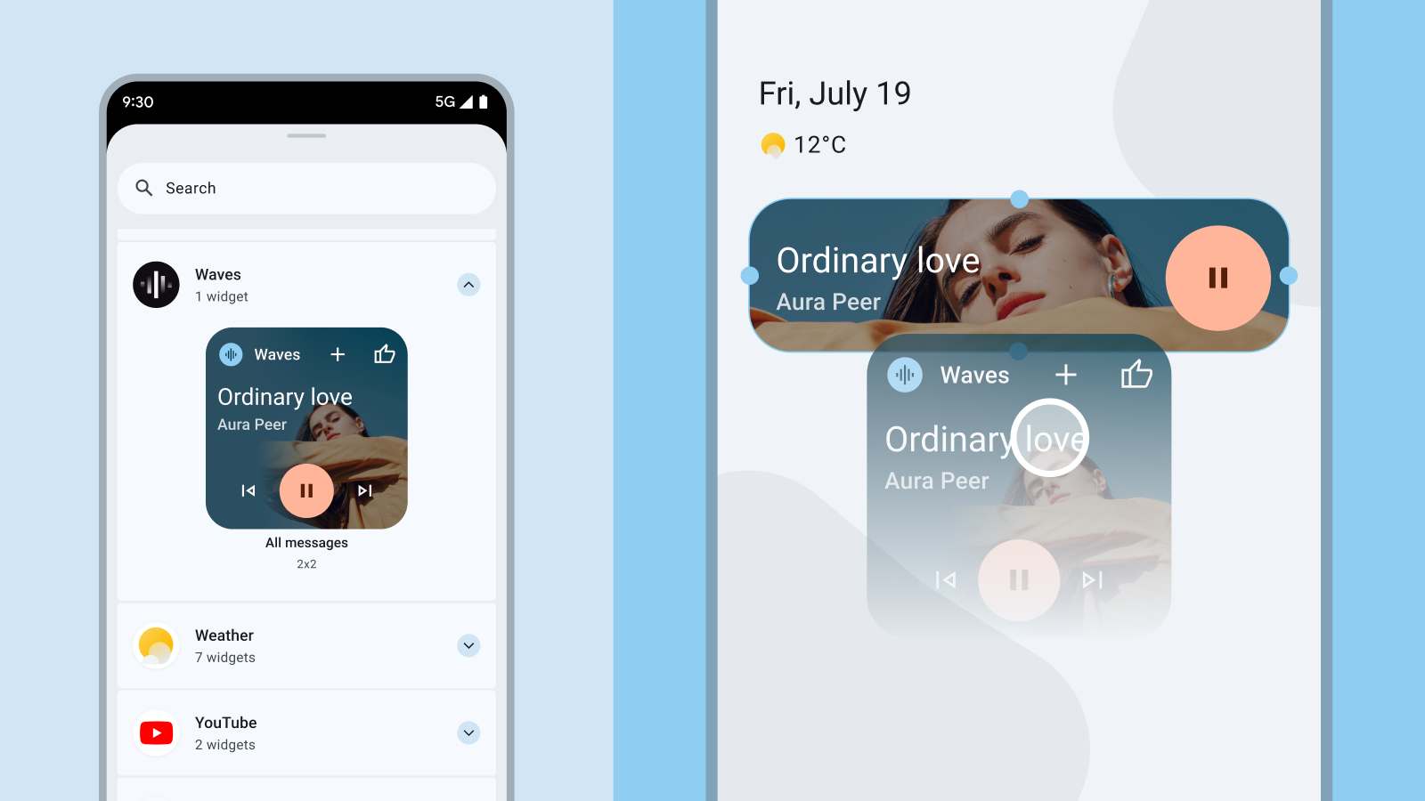 Người dùng khám phá và thêm tiện ích của bạn thông qua bộ chọn tiện ích, như minh hoạ từ trình đơn Tiện ích xuất hiện khi họ nhấn và giữ trên màn hình chính hoặc trên biểu tượng ứng dụng của bạn. Trên một số thiết bị, bộ chọn tiện ích sẽ hiển thị phần đề xuất cho thấy các tiện ích chất lượng. Ngoài ra, bạn có thể quảng bá tiện ích của mình ngay trong ứng dụng tại những thời điểm phù hợp khi chức năng của tiện ích đó phù hợp nhất. Hướng dẫn này mô tả cách quảng bá tiện ích của bạn một cách hiệu quả.