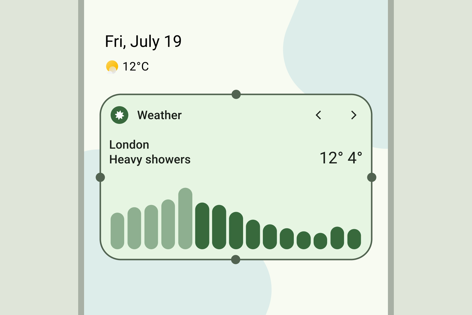 עיצוב ווידג'טים מותאמים ל-Android שניתנים להתאמה בקלות. מומלץ להשתמש בגדלי ברירת המחדל שלנו כנקודת מוצא, ולבדוק את הפריסות במימדים שונים כדי להבטיח קריאוּת וחוויית משתמש אופטימליות.