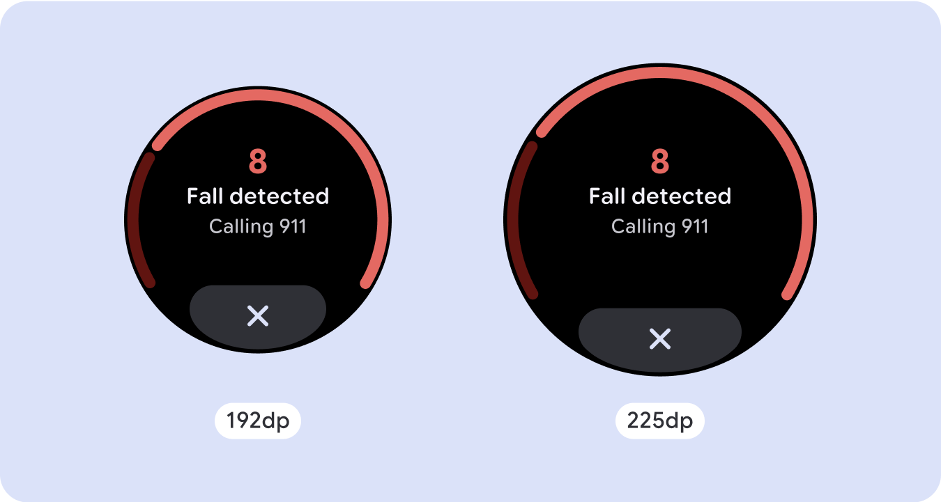 고유한 화면 디자인의 경우 다양한 화면 크기에서 철저히 테스트하여 구성요소와 요소가 원활하게 조정되고 콘텐츠가 잘리지 않도록 합니다. 비율 여백은 스페이서를 효과적으로 조정하는 데 도움이 되며, 225dp의 브레이크포인트를 사용하여 더 큰 시계 화면에 추가 정보와 향상된 기능을 도입하는 것이 좋습니다.