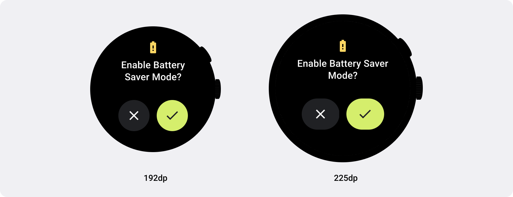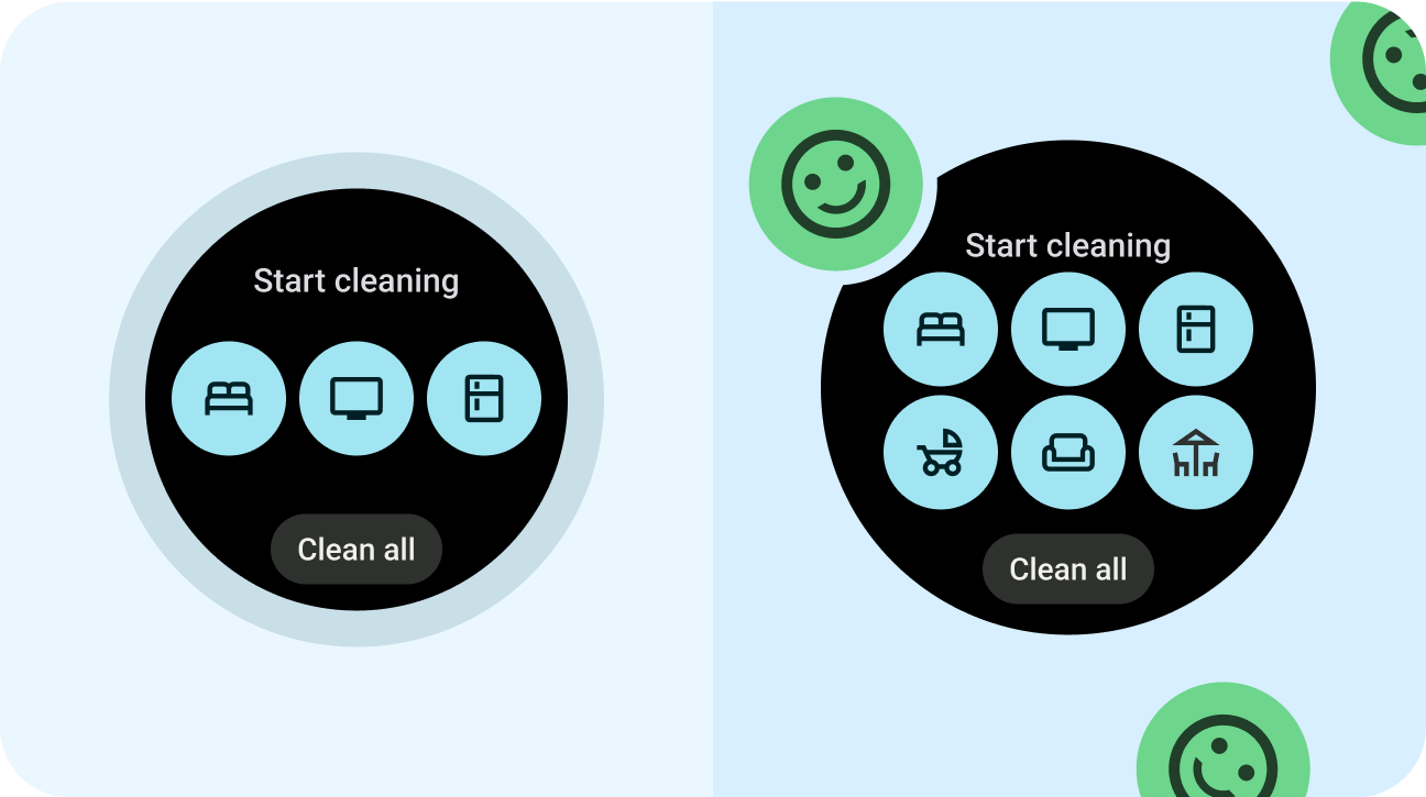 - Design custom layouts and behaviors at 225 dp and larger.