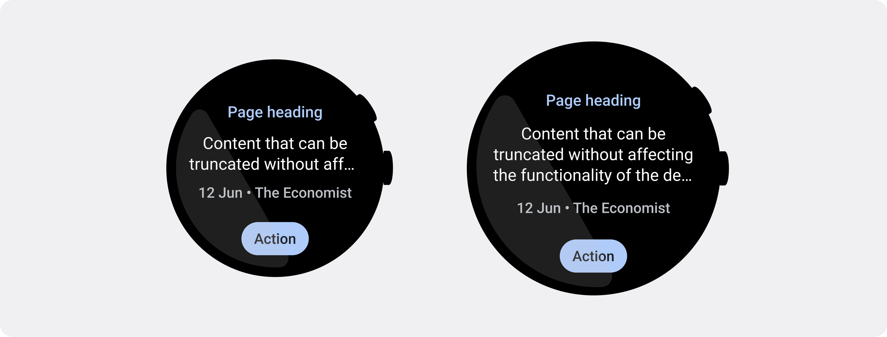 In most cases, larger screens can show more text and content before truncation. Even though more horizontal space might be available, however, always design for the smallest screen size to create a consistent experience across devices.