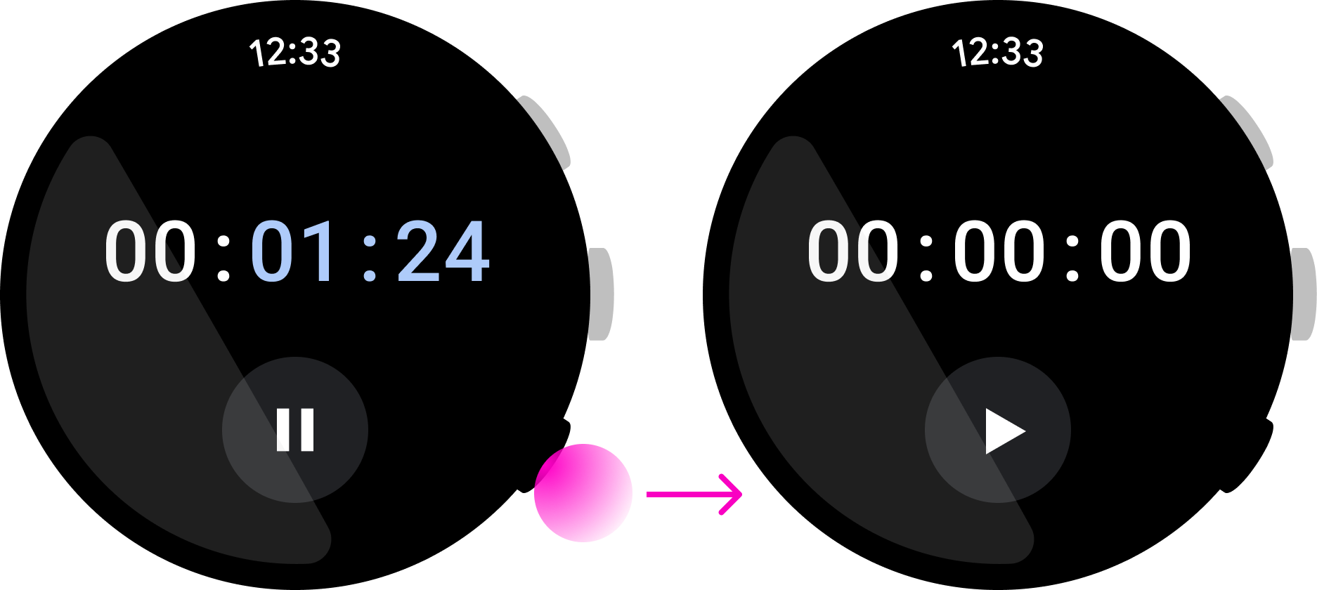 Aşağıda, Wear OS cihazlarda en yaygın düğme türleri verilmiştir.