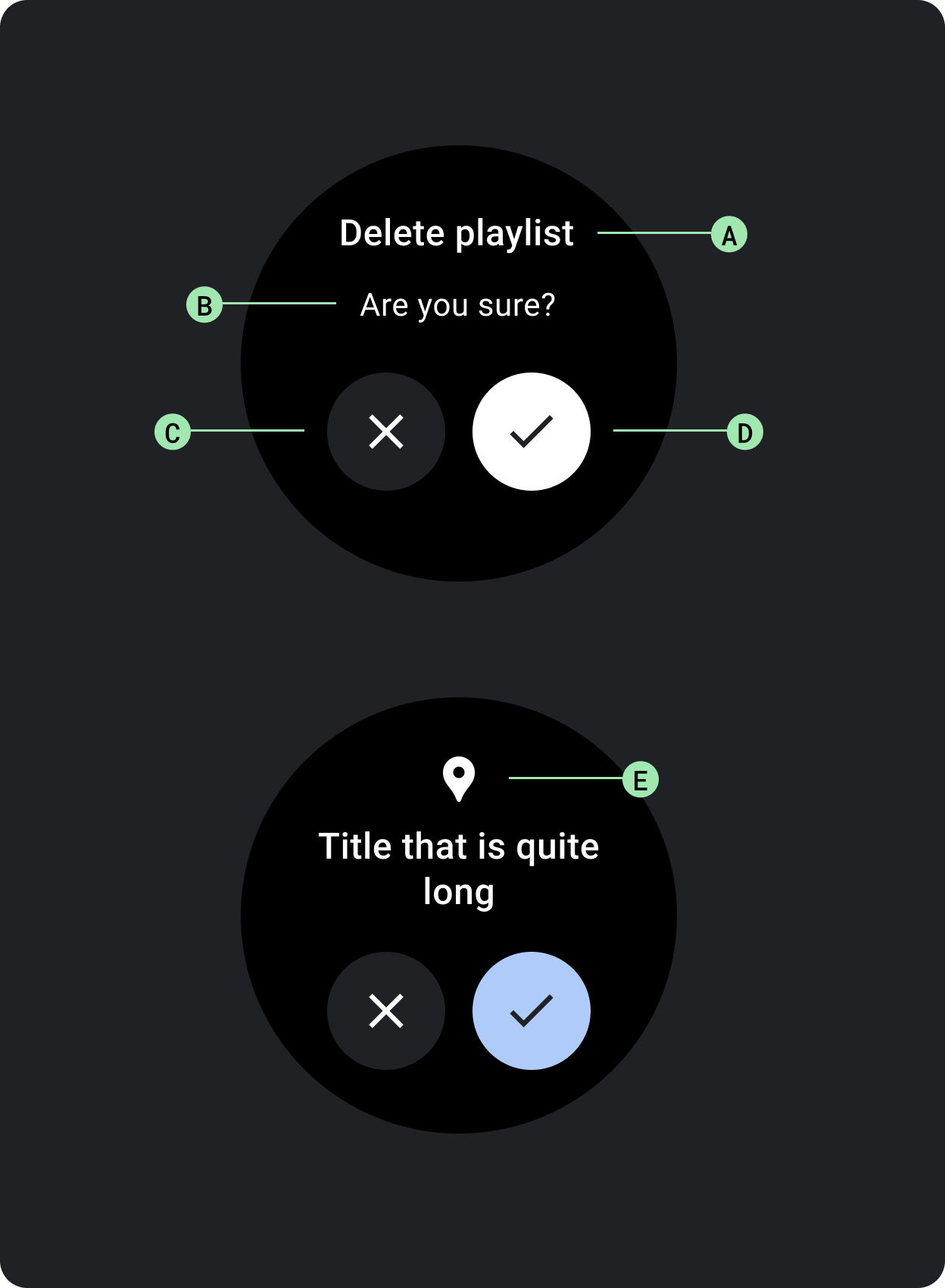 确认组件会在短时间内向用户显示确认消息。与 Material 中的对应组件不同,Wear OS 中的确认组件不允许用户提供最终的确认选择。