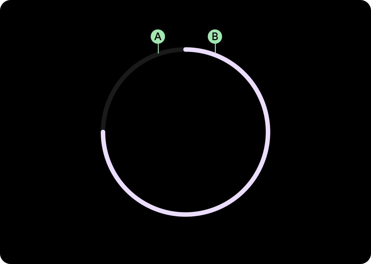 يمكنك إنشاء مؤشرات مستوى التقدّم مع ترك مساحة لعرض المعلومات المهمة، مثل الوقت. يمكنك ترك فجوة من خلال تغيير زاوية بداية ونهاية مؤشر التقدم.