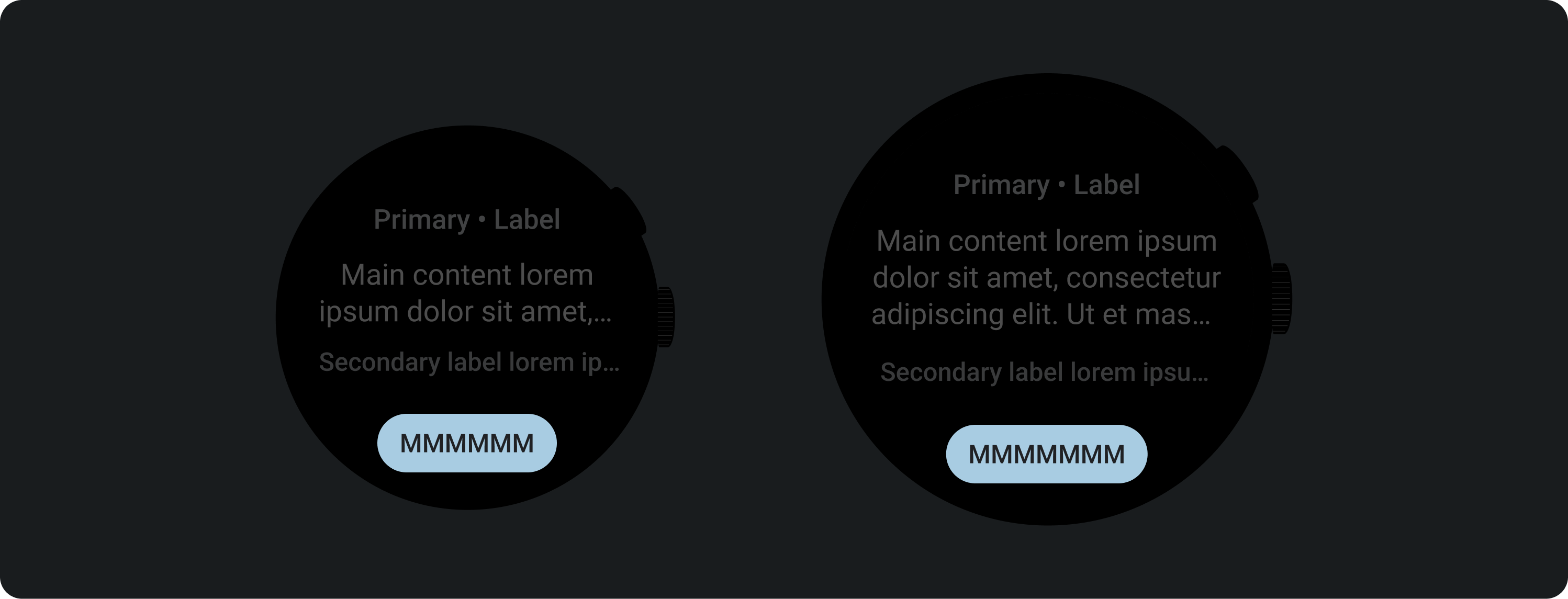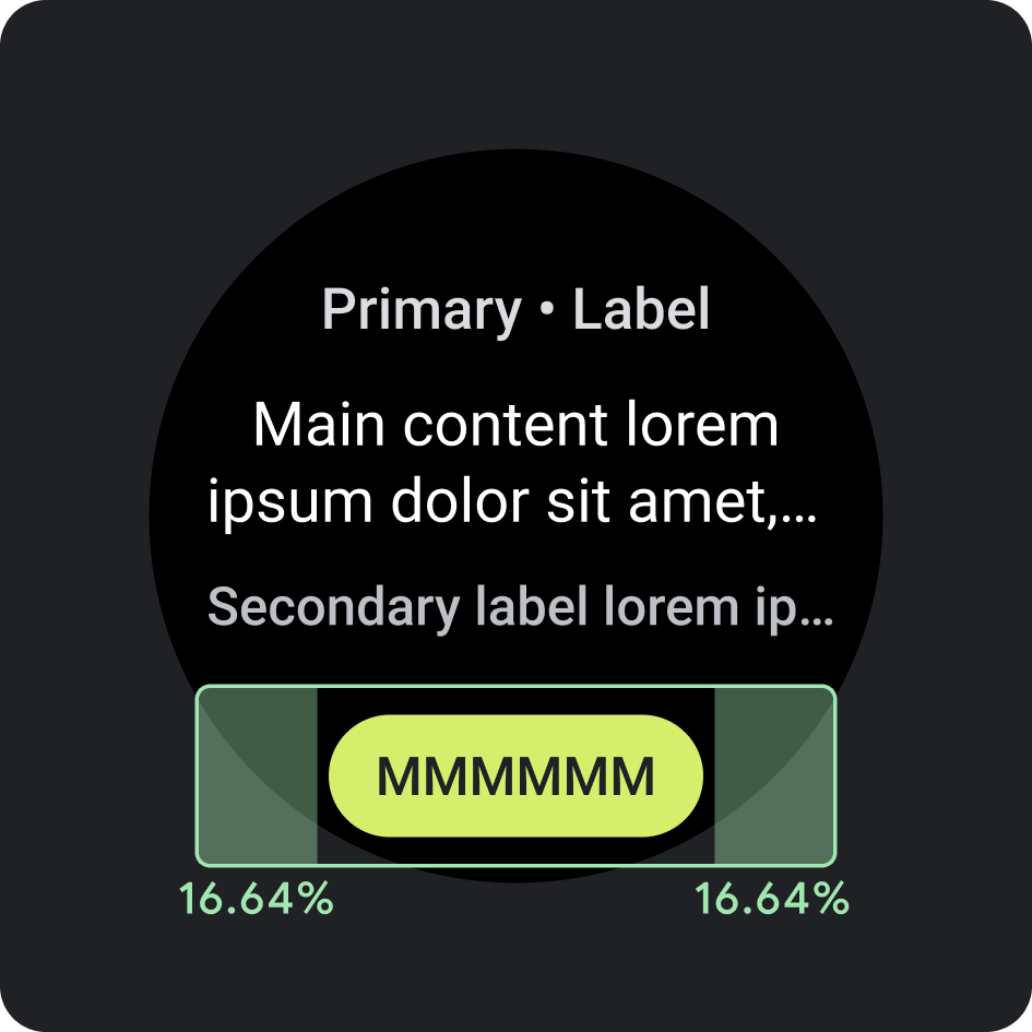 Roboto فونت اصلی مورد استفاده در Wear OS است. Body 2 بهعنوان پیشفرض و کوچکترین اندازه فونت توصیه میشود، در حالی که Display 2 بزرگترین سبکی است که برای کاشیها در دسترس است.