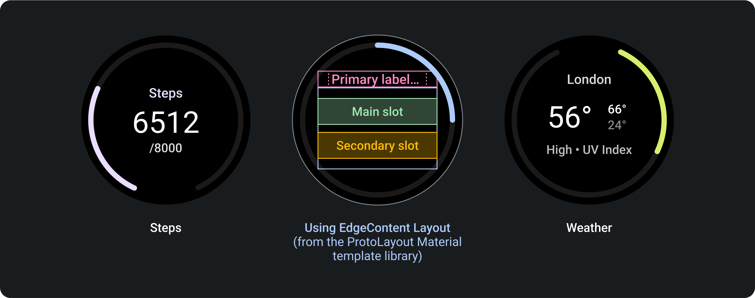 Familiarisez-vous avec les modèles de mise en page ProtoLayout Material et des exemples de mises en page de conception afin de concevoir et de créer des cartes uniques pour vos applications.