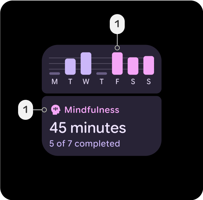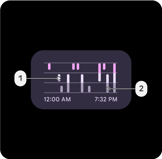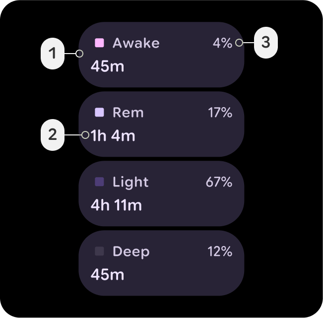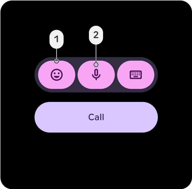 Wear Material 3 표현 색상 시스템은 주요 구성요소에 3개의 강조 레이어(기본, 보조, 3차)와 2개의 중립 표면 레이어를 사용합니다. 각 역할은 일관된 대비를 갖는 다양한 값을 제공하므로 어떤 테마에서든 통일된 환경을 위해 표현력이 풍부하면서도 접근성이 뛰어난 색상 조합을 사용할 수 있습니다.