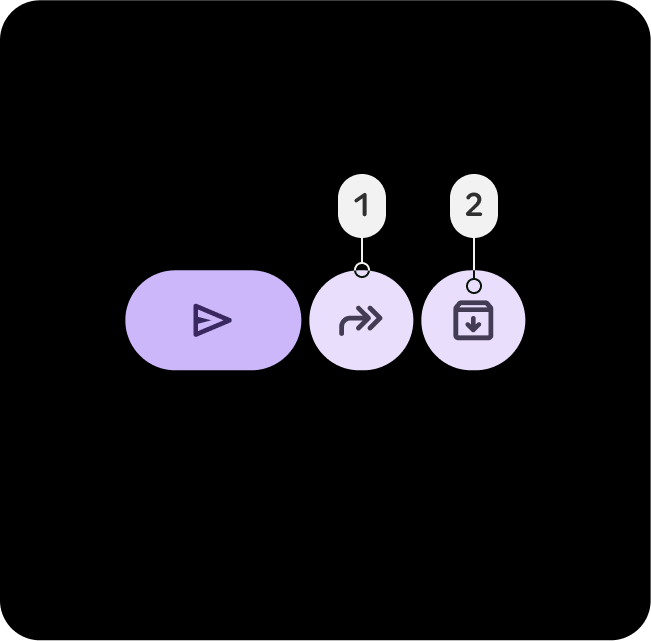 보조 역할은 보조 버튼이나 보완 작업과 같이 UI가 밀집된 영역에서 지원 작업을 위해 사용합니다. 복잡한 레이아웃에서 기본 요소를 가리지 않고 가시성을 유지합니다.