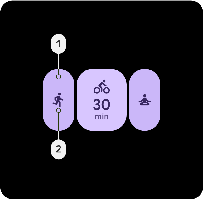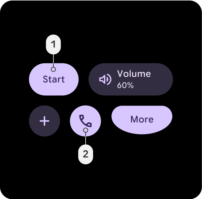 Wear Material 3 Expressive renk sisteminde, temel bileşenler için üç vurgu katmanı (birincil, ikincil, üçüncül) ve iki nötr yüzey katmanı kullanılır. Her rol, tutarlı kontrast içeren bir değer aralığı sunar. Bu sayede, herhangi bir temada birleşik bir deneyim için etkileyici ancak erişilebilir renk kombinasyonları oluşturulabilir.
