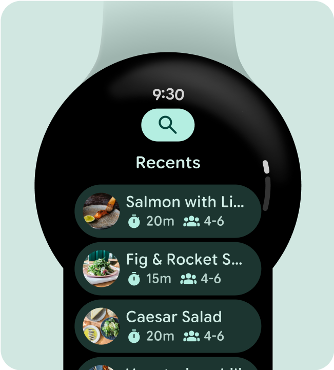 Comme Material 3 Expressive traite les rôles de couleur, Wear OS applique la couleur aux expériences individualisées avec une expression de couleur dynamique et accessible. Wear OS n'utilise que le thème sombre, car l'interface du wearable est conçue sur un arrière-plan noir. Étant donné qu'il s'agit d'une plate-forme exécutée sur des appareils tactiles, Wear OS dispose également d'une palette de couleurs plus limitée, car il ne nécessite pas autant d'états de survol et de mise au point. Utilisez les outils de création de thèmes de couleurs spécifiques à Wear OS pour créer un thème personnalisé autour de votre marque, et générer les palettes de référence complètes et les rôles de couleur attribués qui prennent en charge les jetons Material Design et sont conçus pour fonctionner de manière transparente avec les composants d'UI du système.