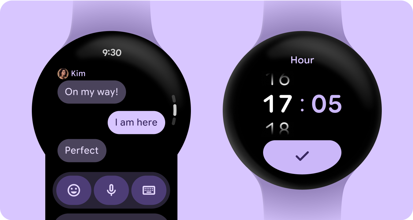 Di UI smartwatch, warna harus menyampaikan makna dengan jelas dan intuitif. Misalnya, warna merah menunjukkan error dan hijau menunjukkan keberhasilan, sehingga membantu pengguna memahami tindakan atau status dengan cepat tanpa memerlukan penjelasan tambahan. Penggunaan warna semantik ini membantu pengguna menavigasi UI Anda dan mengambil tindakan dengan percaya diri.