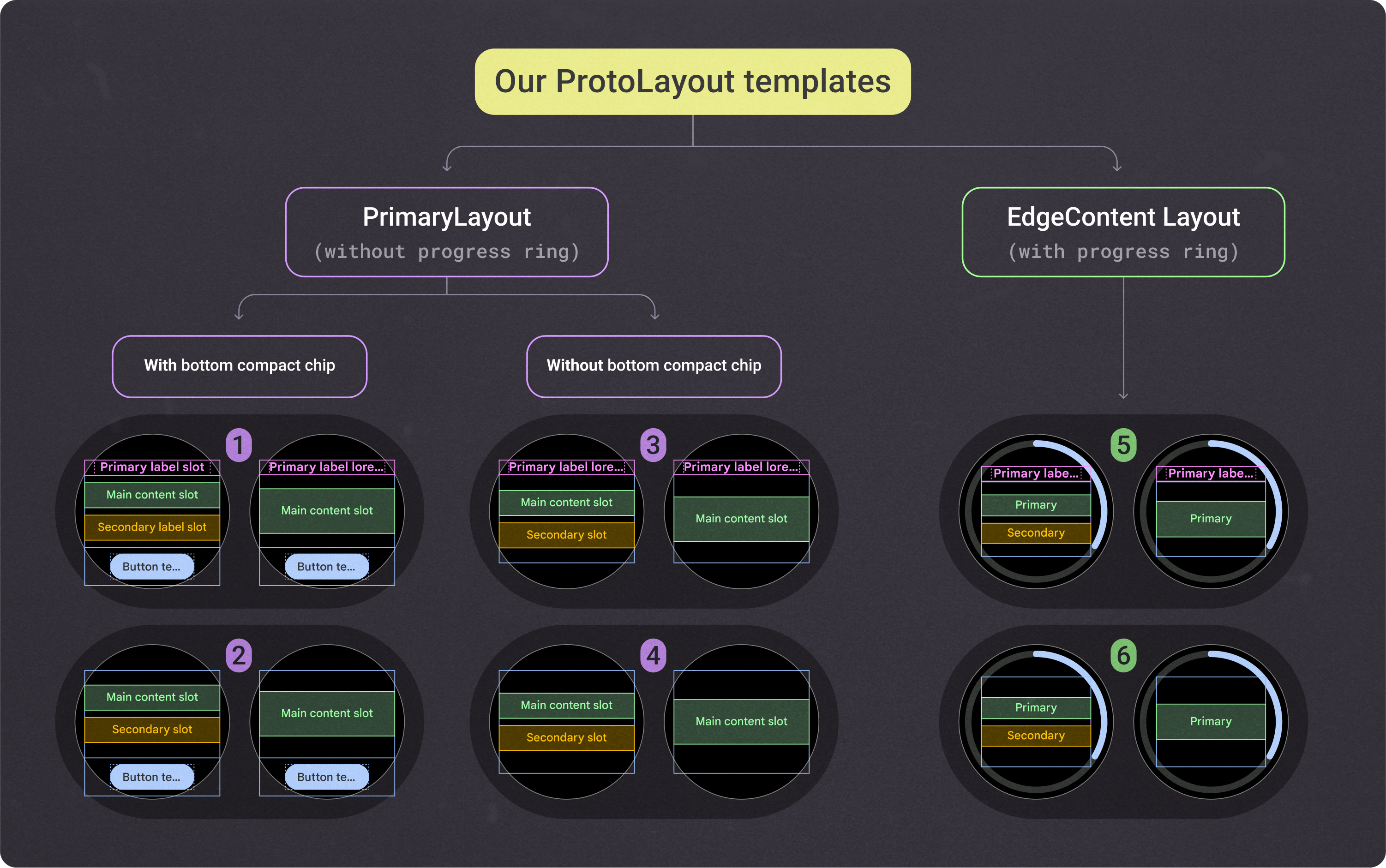 瞭解 ProtoLayout Material 版面配置範本和範例設計版面配置,以便為應用程式設計並建構獨一無二的資訊方塊。