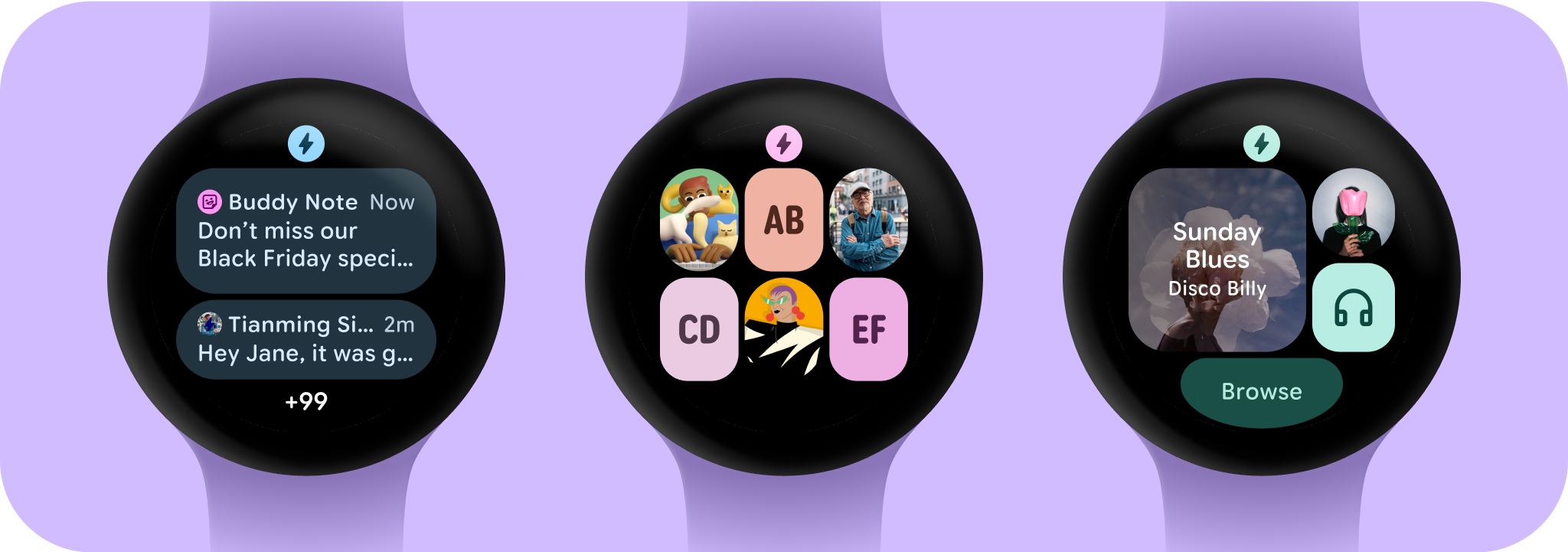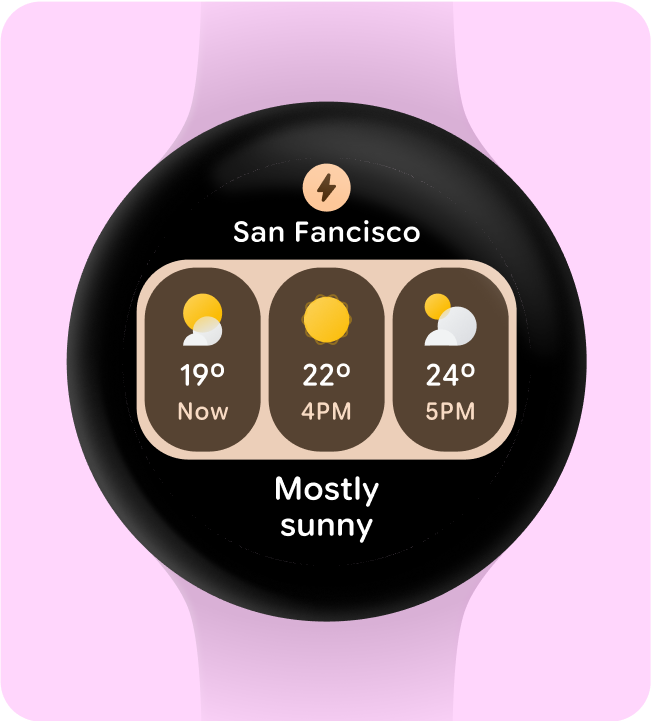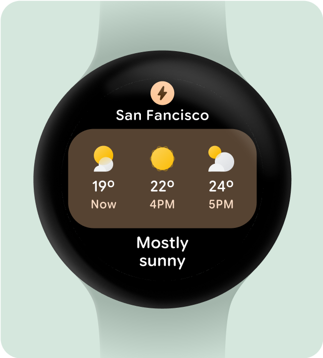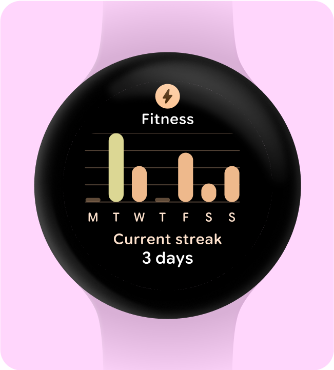 Glanceability is key for Wear OS design. With limited screen time (around 7 seconds), prioritize essential information in a clear format, that's easy to understand at a glance.