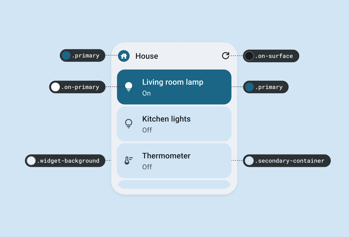 อนุญาตให้วิดเจ็ตปรับตามธีมอุปกรณ์ของระบบเพื่อให้วิดเจ็ตเข้ากันกับหน้าจอหลักของผู้ใช้ได้ดียิ่งขึ้น เพื่อให้วิดเจ็ตสามารถใช้ฟีเจอร์ต่างๆ เช่น ธีมสว่างและมืด รวมถึงการตั้งค่าคอนทราสต์