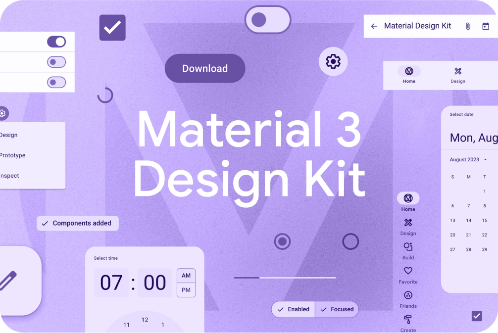 Adoptez les styles Material Design, y compris les tailles, la mise à l'échelle, les grandes tailles de cible, les couleurs et la typographie.
