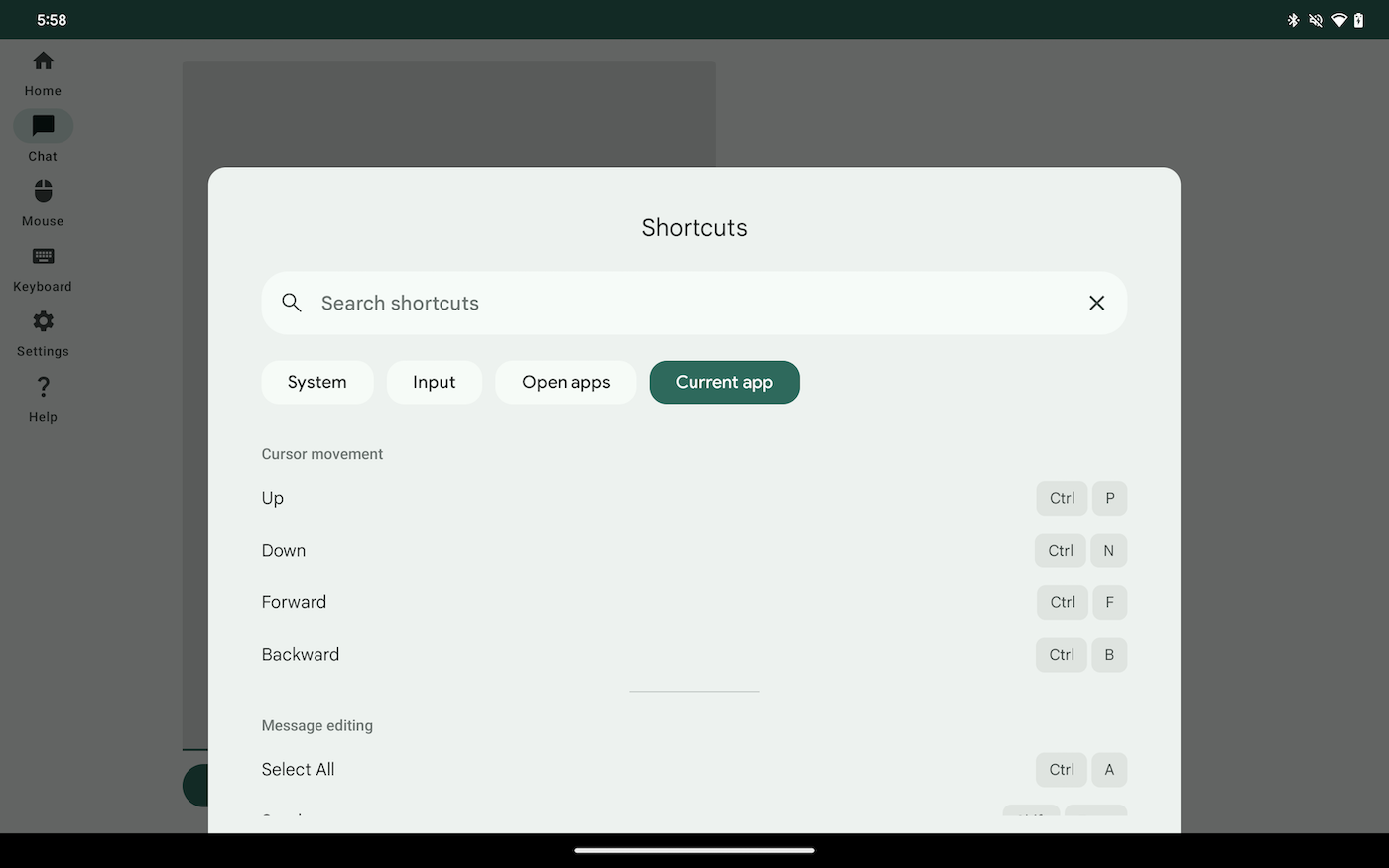 Пользователи нажимают Meta+/, чтобы открыть экран сочетаний клавиш, который доступен на Android 7.0 (уровень API 24) и выше.