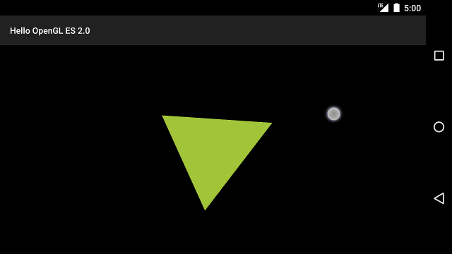 public void onDrawFrame(GL10 gl) { ... float[] scratch = new float[16]; // Create a rotation for the triangle // long time = SystemClock.uptimeMillis() % 4000L; // float angle = 0.090f * ((int) time); Matrix.setRotateM(rotationMatrix, 0, mAngle, 0, 0, -1.0f); // Combine the rotation matrix with the projection and camera view // Note that the vPMatrix factor *must be first* in order // for the matrix multiplication product to be correct. Matrix.multiplyMM(scratch, 0, vPMatrix, 0, rotationMatrix, 0); // Draw triangle mTriangle.draw(scratch); }