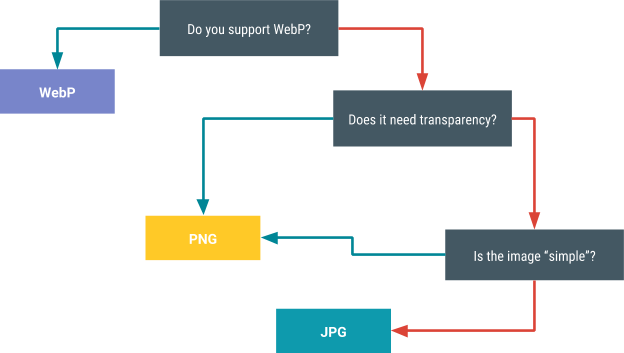 The power of JPG and WebP comes from the fact that you can use a scalar value to balance quality against file size. The trick is finding out what the correct quality value is for your image. Too low a quality level produces a small file at the cost of image quality. Too high a quality level increases file size without providing a noticeable benefit to the user.