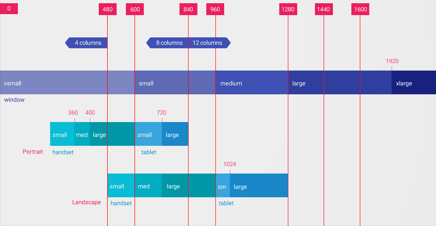 Rysunek 6. Zalecane punkty przełamania szerokości do obsługi różnych rozmiarów ekranu.