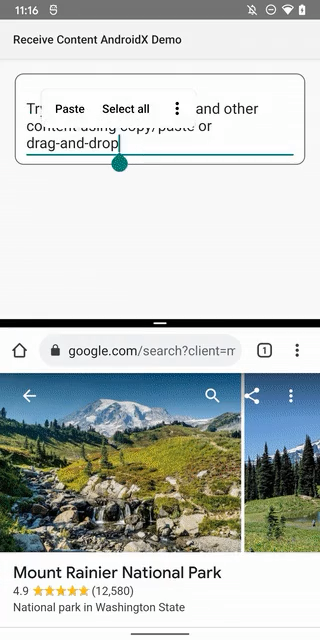 Users love images, videos, and other expressive content, but inserting and moving this content in apps isn't always easy. To make it simpler for apps to receive rich content, Android 12 (API level 31) introduces a unified API that lets your app accept content from any source: clipboard, keyboard, or dragging.