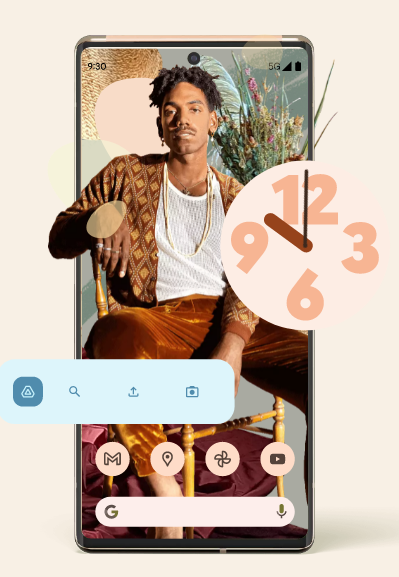 La fonctionnalité Couleur dynamique, ajoutée dans Android 12, permet aux utilisateurs de personnaliser leurs appareils pour qu'ils s'harmonisent avec la palette de couleurs de leur fond d'écran personnel ou avec une couleur sélectionnée dans le sélecteur de fond d'écran.