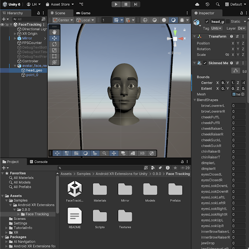 Scopri come creare app immersive con le estensioni Android XR per Unity. Questo insieme di esempi contiene un progetto Unity autonomo per ogni funzionalità di questo pacchetto Unity, tra cui il rilevamento del volto, HandMesh, il rilevamento degli oggetti e altro ancora.