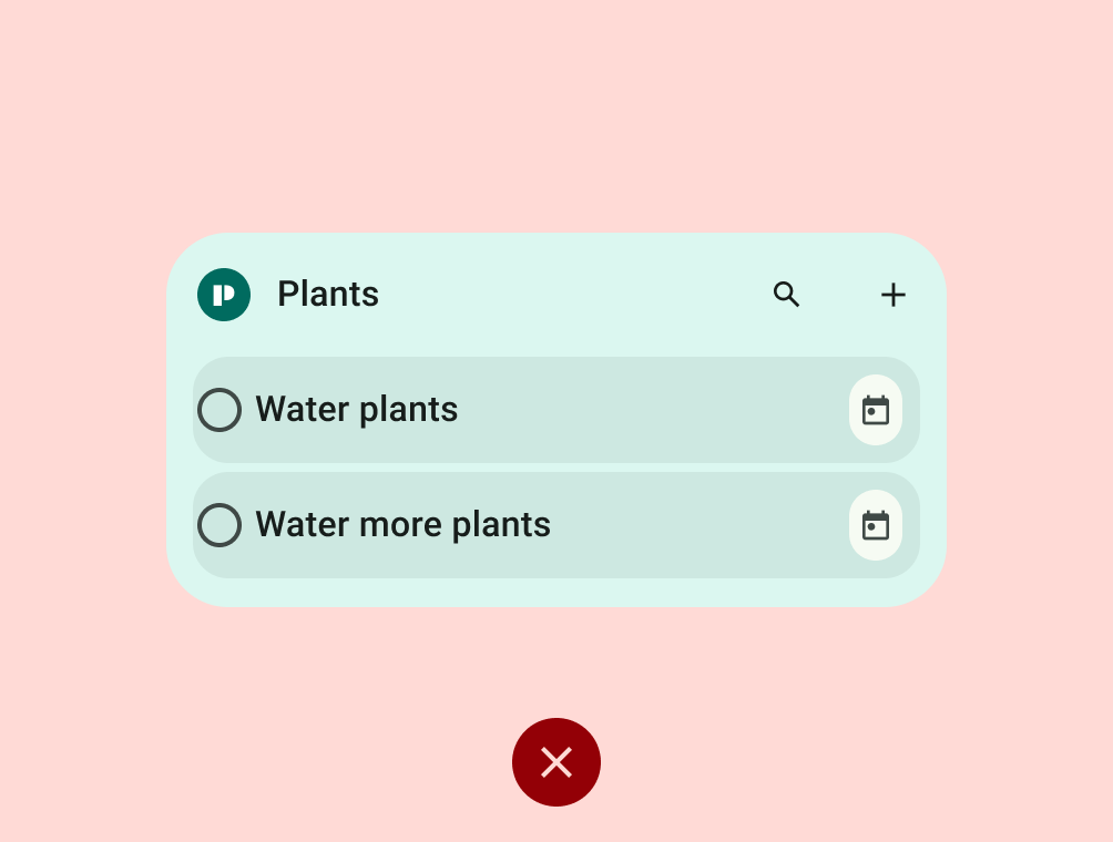 आपके विजेट का कम से कम साइज़ भी काम का होना चाहिए और टच टारगेट (स्क्रीन के वे हिस्से जहां छूने पर कोई ऐक्शन होता है) की ज़रूरी शर्तों (48x48) को पूरा करना चाहिए.