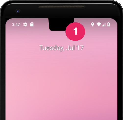 Un corte de pantalla es un área en algunos dispositivos que se extiende a la superficie de la pantalla. Los cortes permiten una orientación de borde a borde experiencia y, al mismo tiempo, dejar espacio para sensores importantes en la parte frontal del dispositivo.