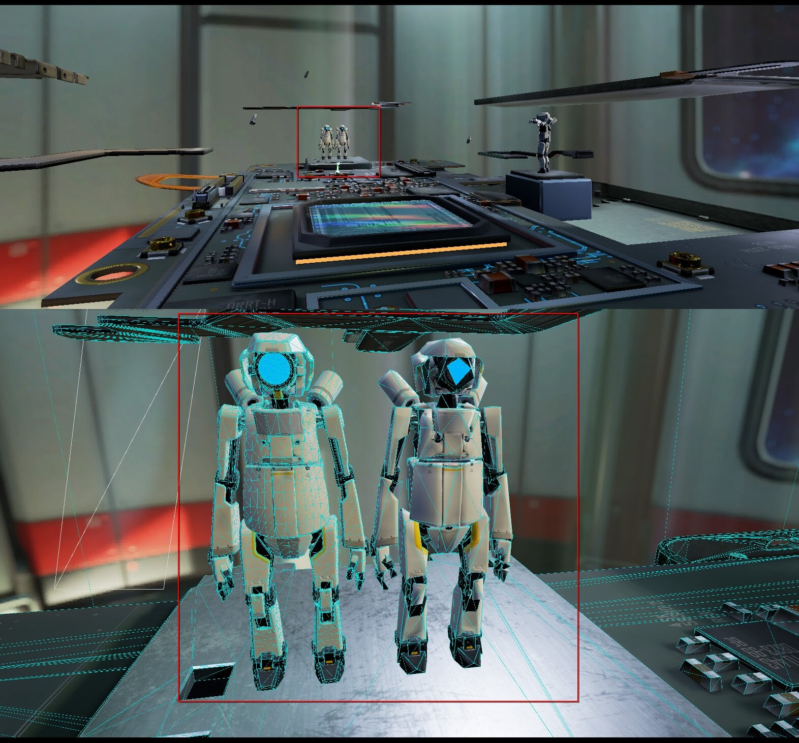 Figure 4. Triangle count comparison for two different use cases. On the left, the CircuitVR Robot has 11,000 triangles. On the right, the Armies Soldier has 360 triangles.